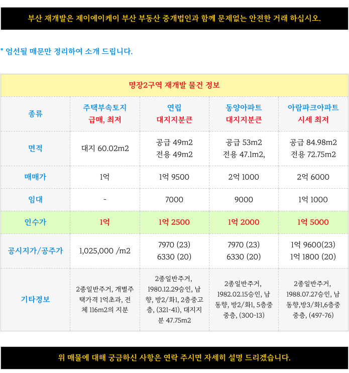 부산 전역 재개발에 대해 궁금하신 사항은 방문 또는 연락주시면 자세히 설명드리겠습니다.