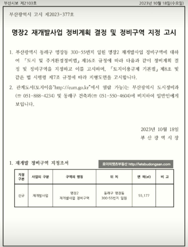 (시공사선정중) 명장2구역 재개발 : 최저 매물 & 진행 일정, 소개 : 동래구
