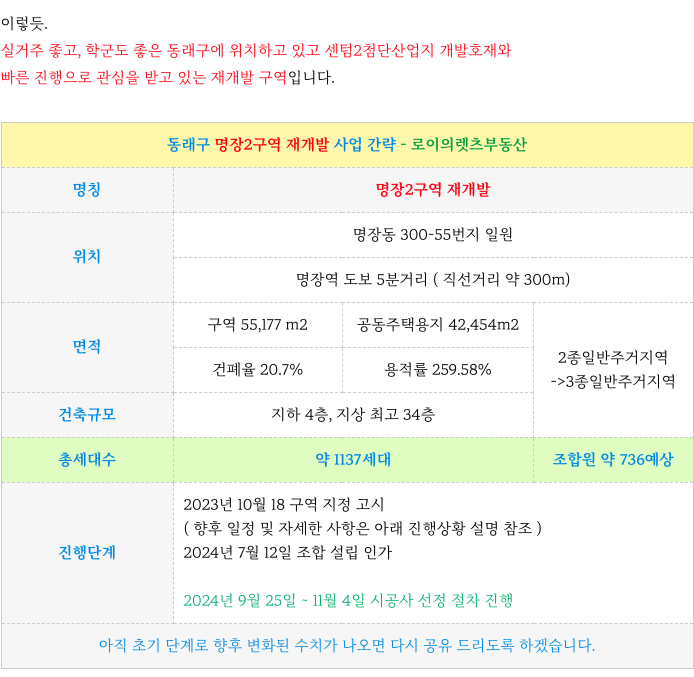 동래구 명장2구역 진행 소식 & 최저 급매 매물 소개해 드리겠습니다.