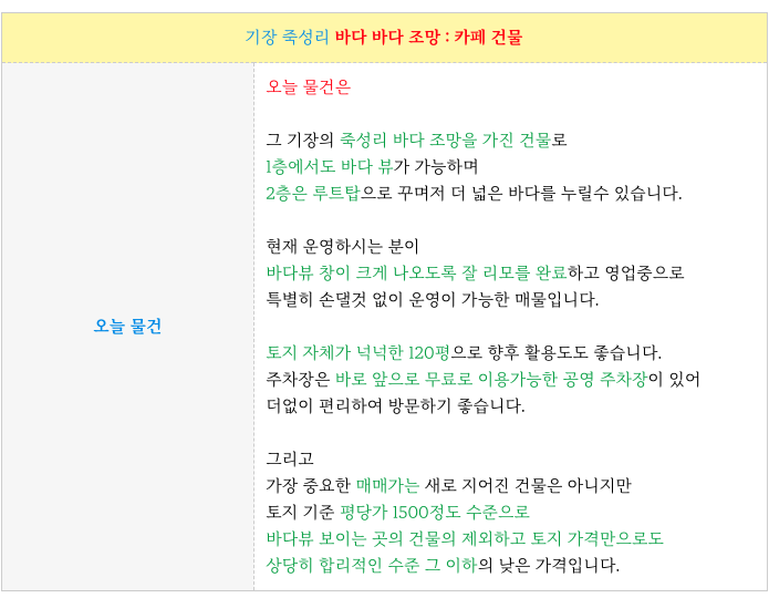 기장 바다뷰 리모델링된 1층 카페, 음식점 상가 건물 매매 물건 정보 정리 드립니다.