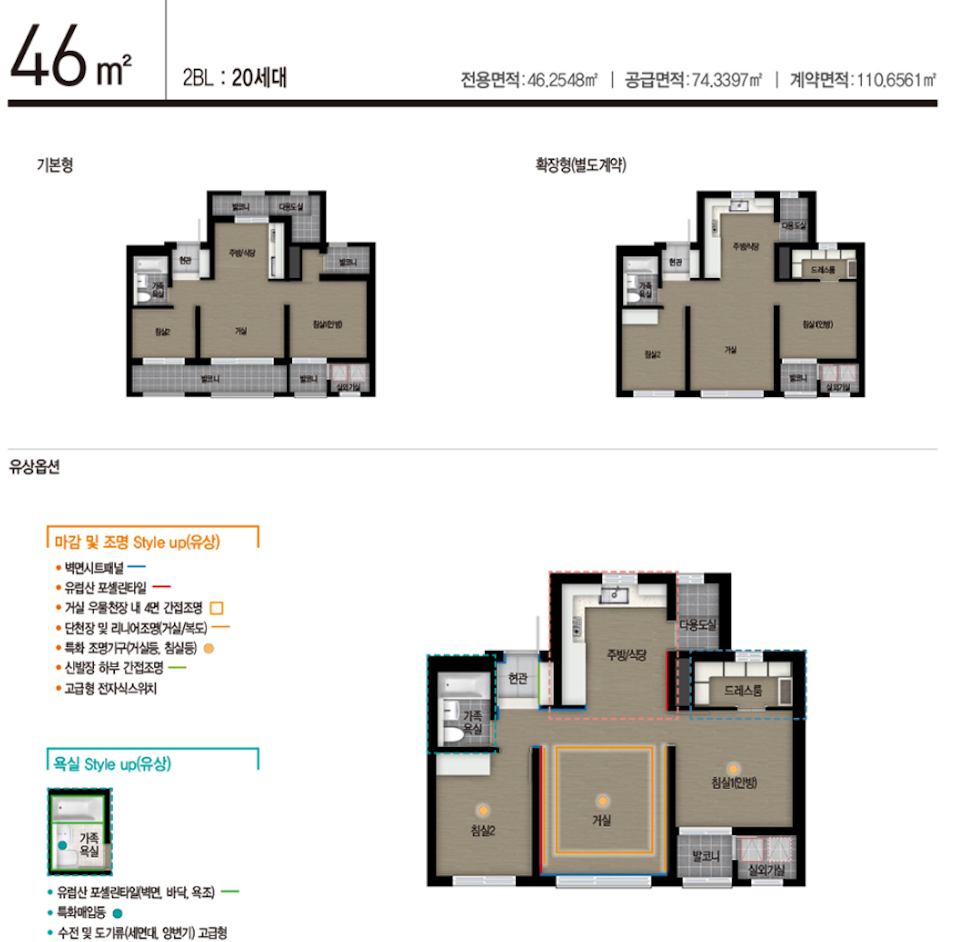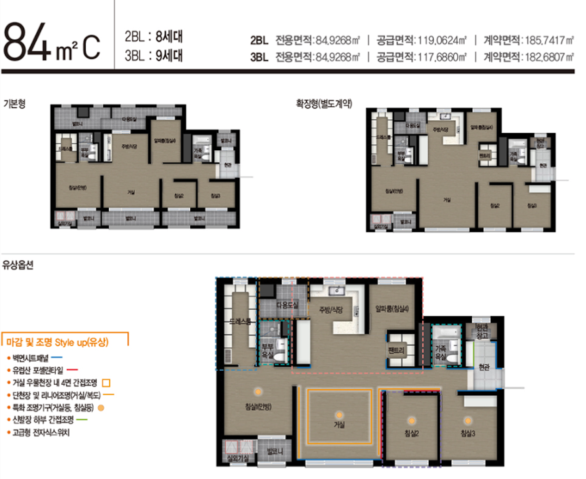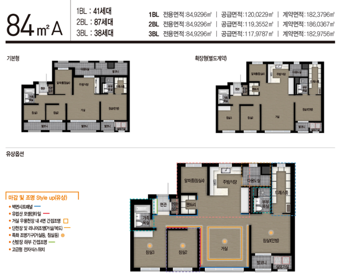 일반 분양가는 확장을 포함하면 평당 약 2000정도 수정에서 별도 옵션 선택이 있습니다.