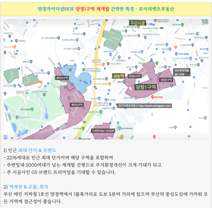 양정1구역 재개발 입지적 주요 특징 간략히 소개해 드립니다.