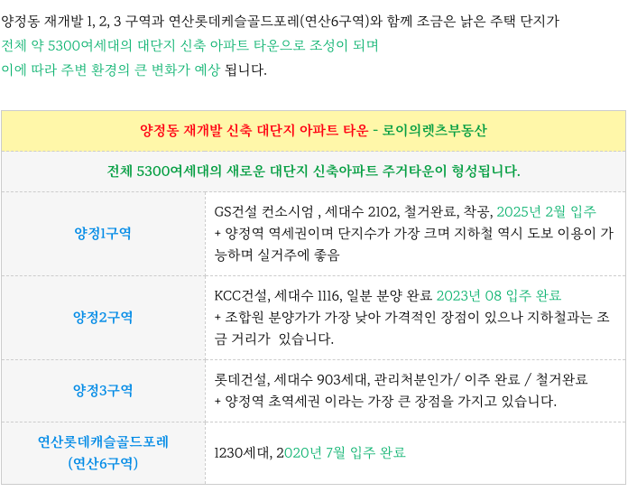 양정동 일대 신축 아파트 타운 조성 부분 설명 드리겠습니다.