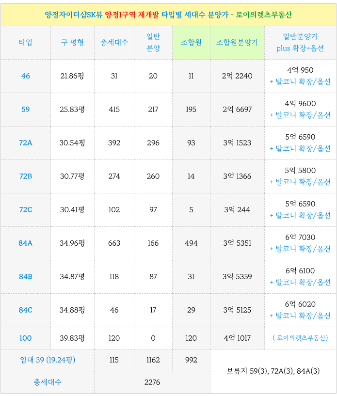 조합원 분양가는 평균 약 1000만원 초반대로 상당히 매력적이며