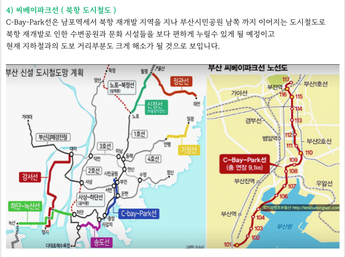 부산 기장과 사상으로 이어지는 도심 대심도의 시민공원 진출입구가 계획되어 있으며