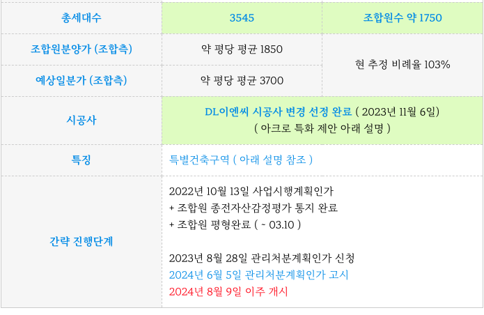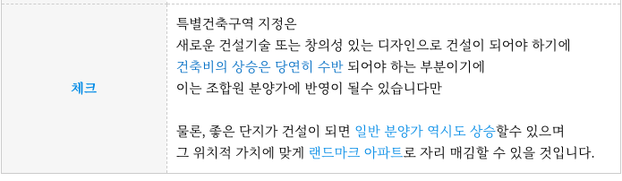 * 조합원 분양가가 높지만 향후 일반분양가는 더욱 높아 금액차이가 큽니다.