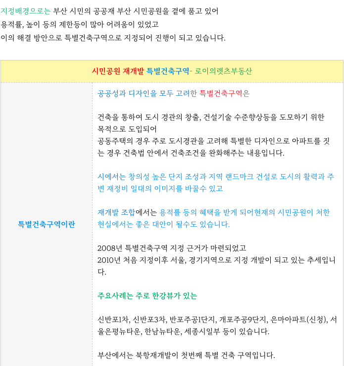 시민공원 촉진3구역은 특별건축구역으로 지정되어 진행되고 있어 해당 부분 설명 드립니다.
