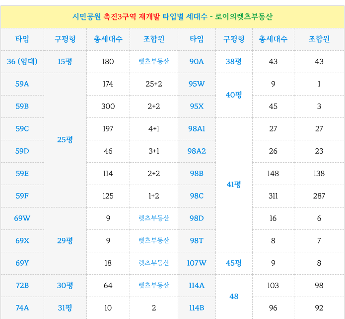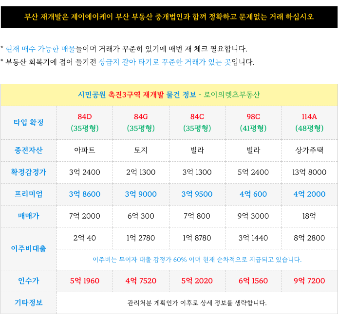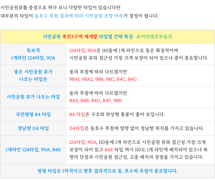 시민공원 촉진3구역 재개발 : 현재 가능 타입별 매물!