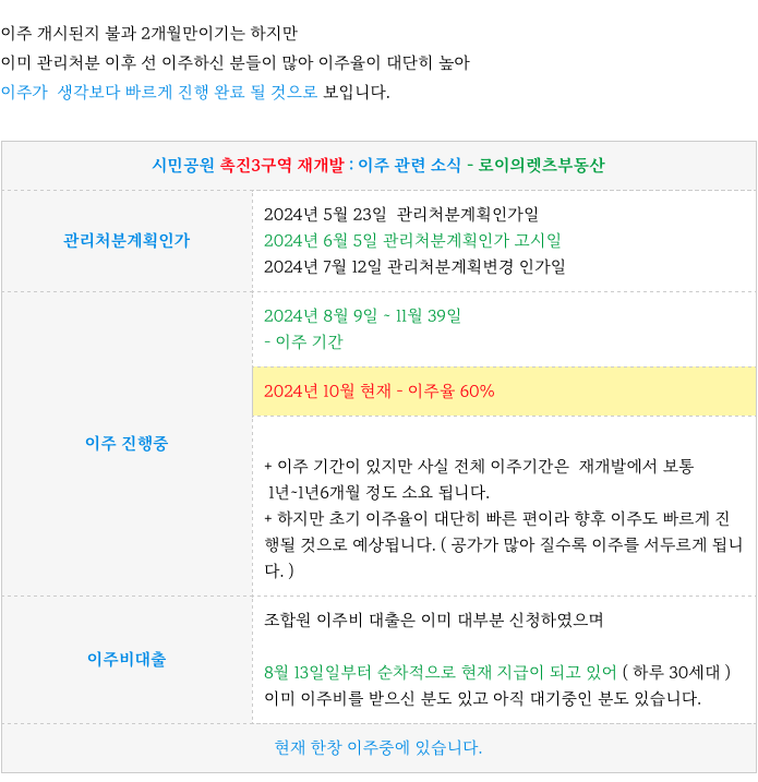 이주중인 시민공원 촉진3구역 현 이주율 등 진행 소식 & 타입별 최저 매물 소개해 드립니다.