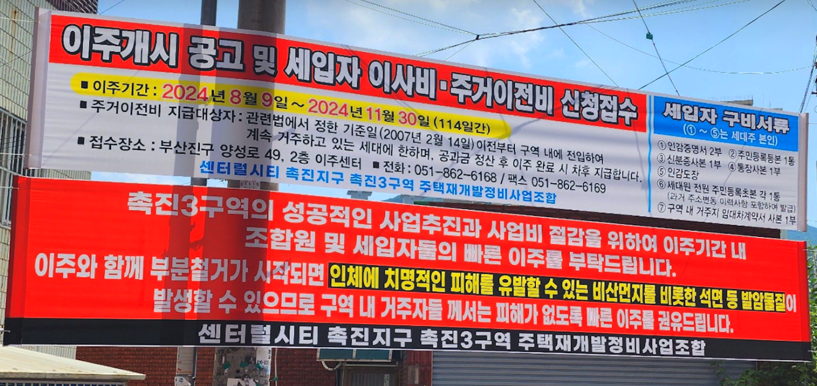 촉진3구역 재개발은 현재 60% 정도의 이주율을 보이고 있습니다.