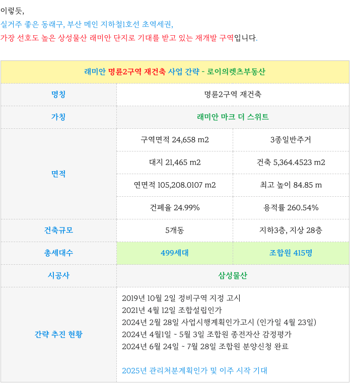| 동래역 역세권 - 사직4구역 재개발 - 진행 일정과 소액 최저 매물 (5) | 2024.10.22 |