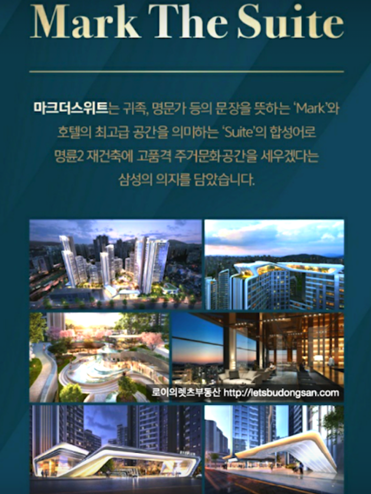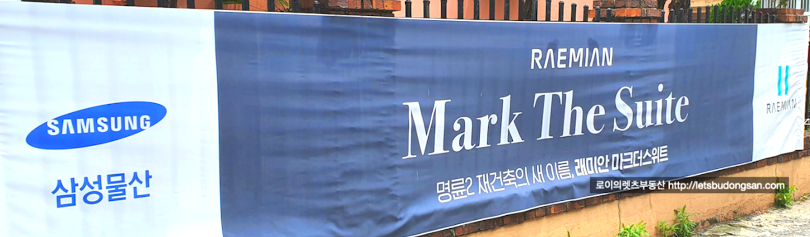 삼성물산 래미안이 시공사로 " 래미안 마크 더 스위트 " 라는 가칭을 가지고 있습니다.