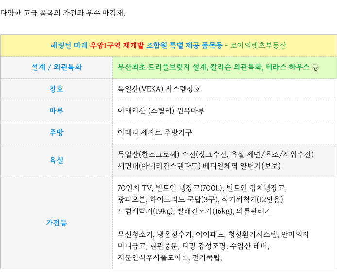 해링턴 마레 조합원 제공 품목등 소개해 드리겠습니다.