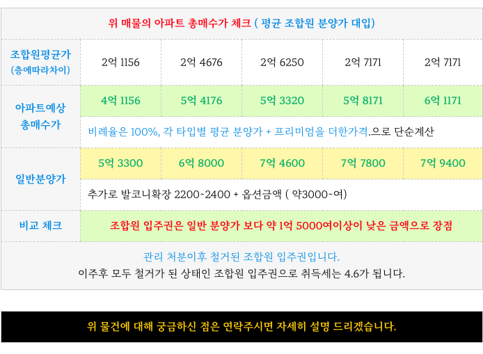 조합원 분양가는 평당 810여만원, 일반 분양가는 평균 2150~ 이상입니다.