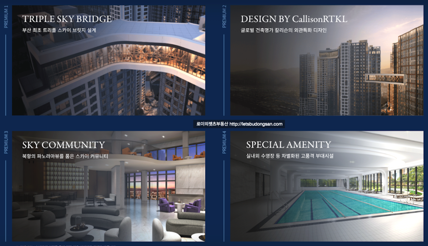 부산 최초의 트리플 브릿지 설계와 칼리슨 외관특화로 기대를 받고 있으며