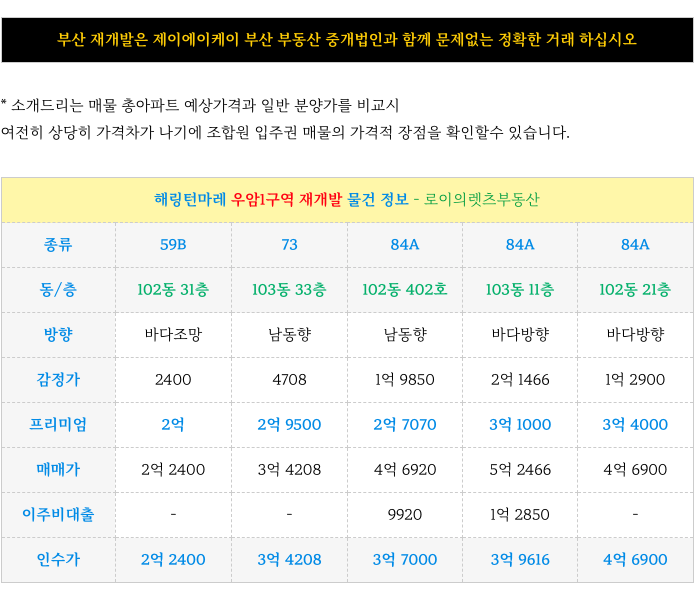 부산전역 재개발, 분양권, 상가, 주택 등 물건 투자 접수 받습니다.