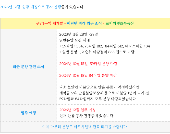 우암1구역 재개발 = 해링턴 마레 최근 소식 & 입주권 매물 소개해 드리겠습니다.