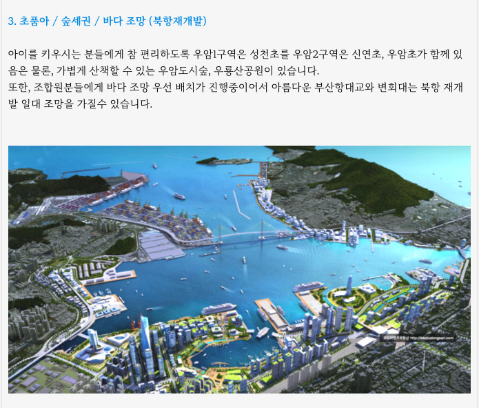 - 초품아, 숲세권, 가격경쟁력, 바다 조망 (북항재개발)