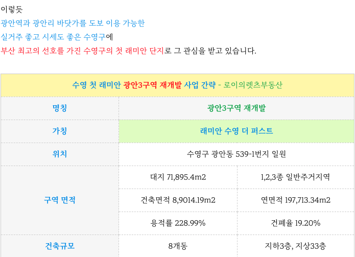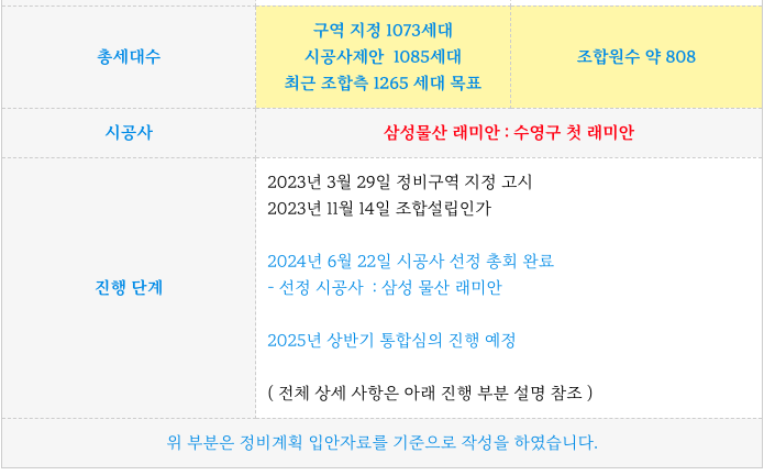 광안3구역 재개발 - 최초 수영구 래미안 - 현 최저 매물, 진행