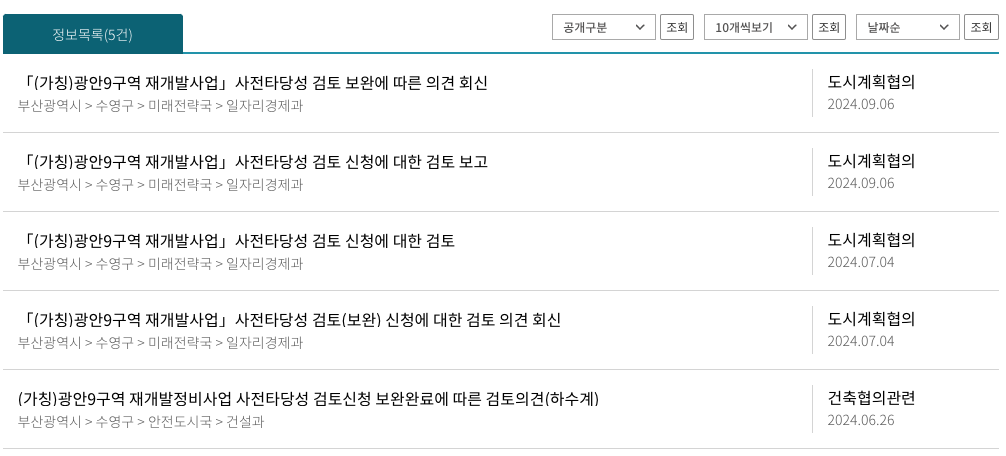 대단지 광안9구역 은 올해 6월에 사타 보완 접수를 하였는데