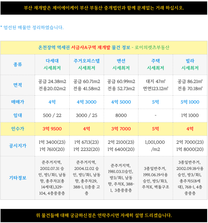 서금사A구역 재개발 현 최저 매물들 정리 소개해 드립니다.