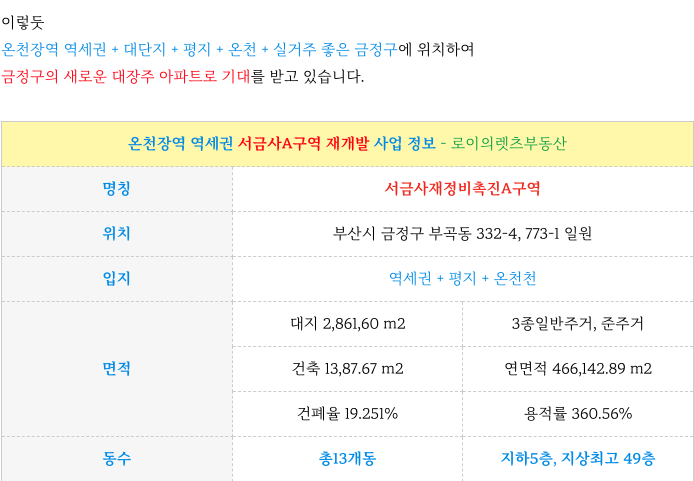 온천역 서금사A구역 재개발 : 진행 소식 & 현 최저 매물