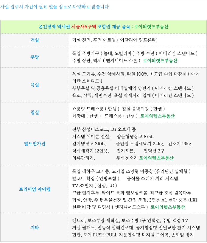 서금사A구역 재개발 조합원 특별 제공 품목 리스트 입니다.