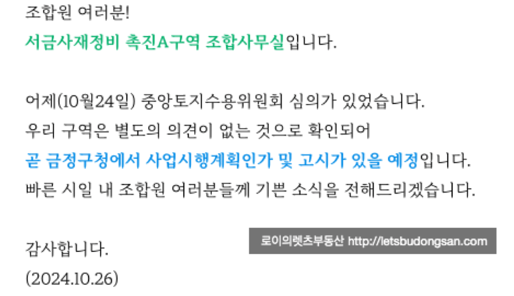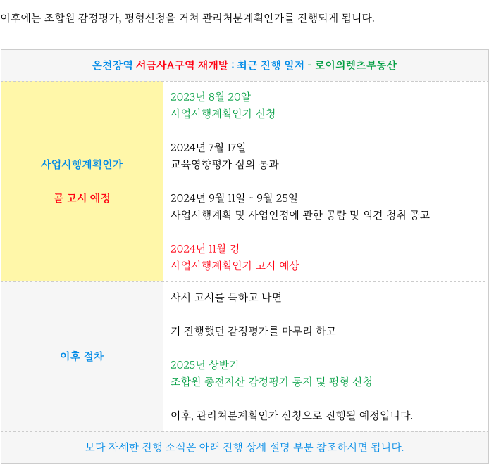 서금사A구역 재개발 주요 진행 사항 & 이후 절차등 추가적인 부분은 아래 페이지를 참고 부탁드립니다.