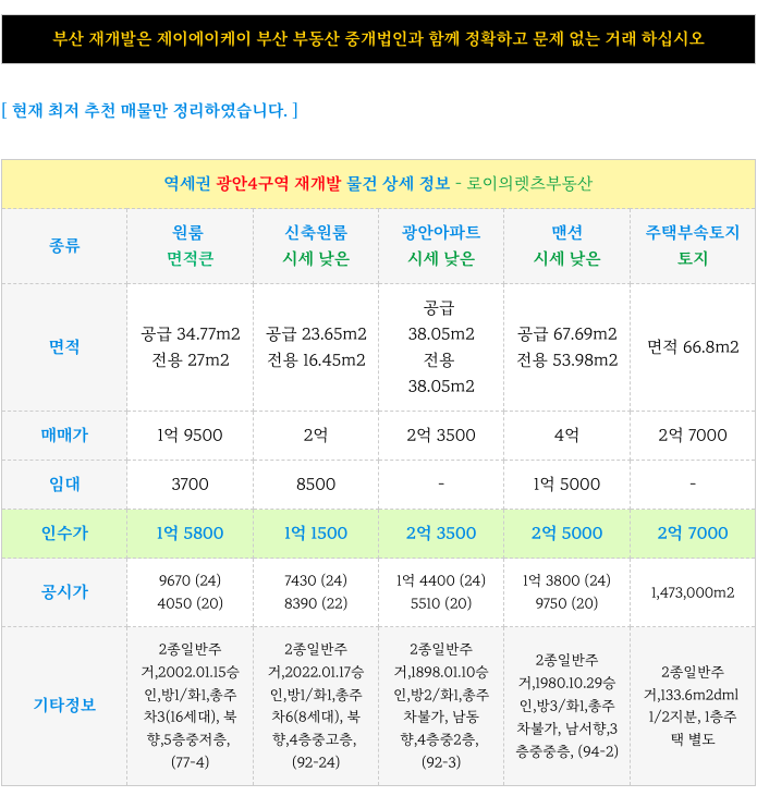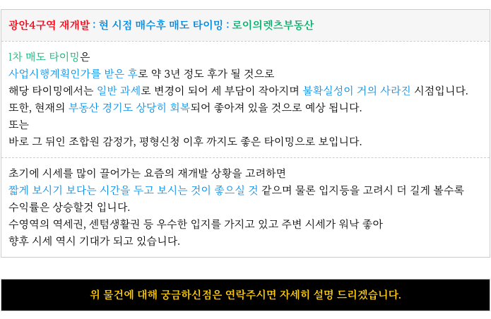 수영구 광안4구역 재개발 급매 매물 소개해 드리곘습니다.