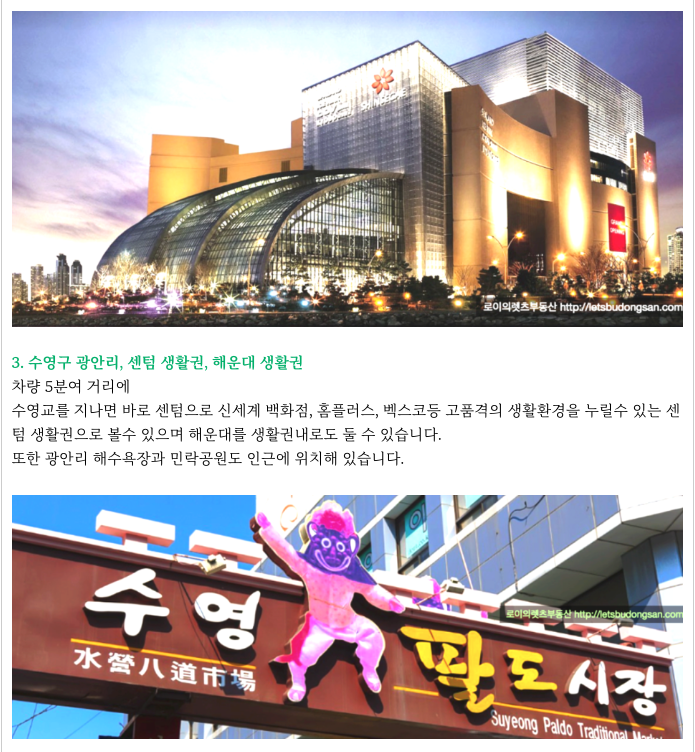 - 수영역 더블 역세권 : 부산 지하철 2호선, 3호선 환승센터.
