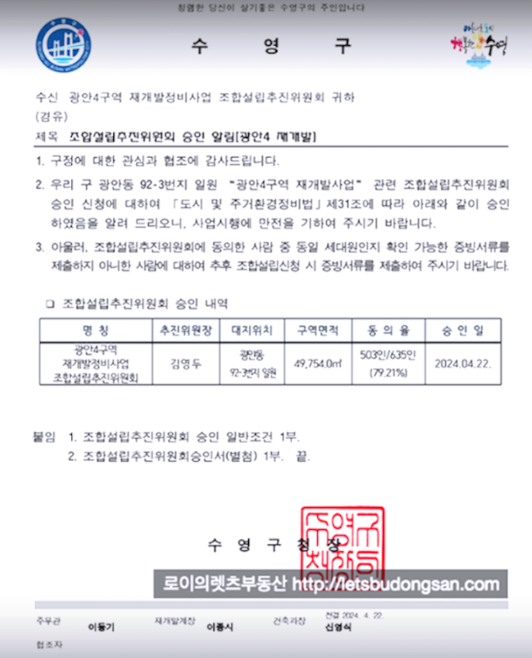 수영구 광안4구역 은 이제 조합설립을 바로 앞두고 있습니다.