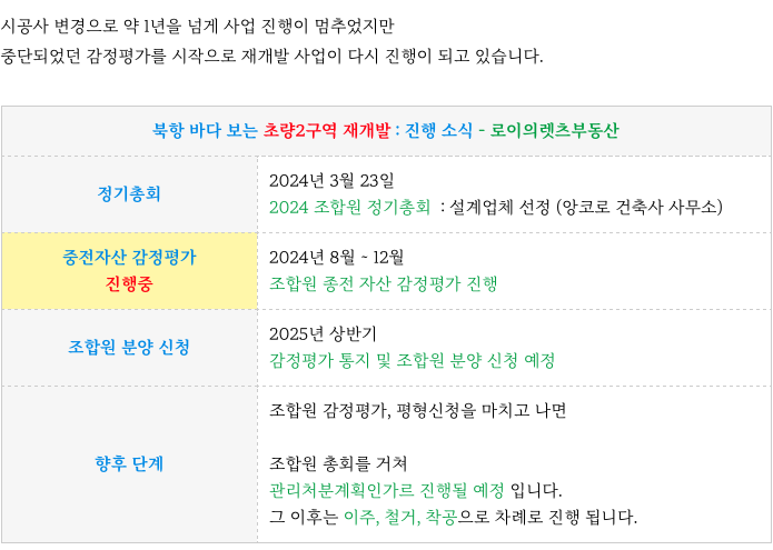 대단지 초량2구역 현재까지의 주요 진행 사항 & 향후 절차 등 추가 정보는 아래 페이지를 참고 부탁드립니다.