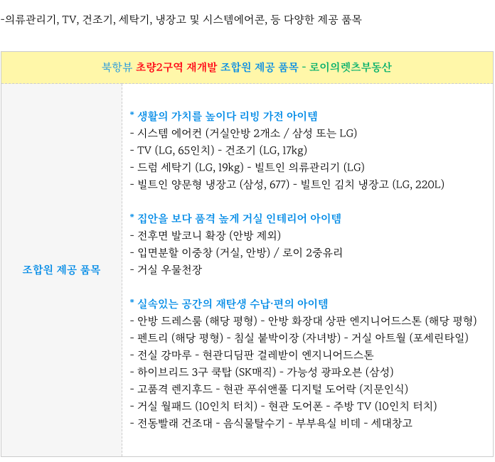 대단지 초량2구역 조합원 특별 제공 품목 소개 드립니다.