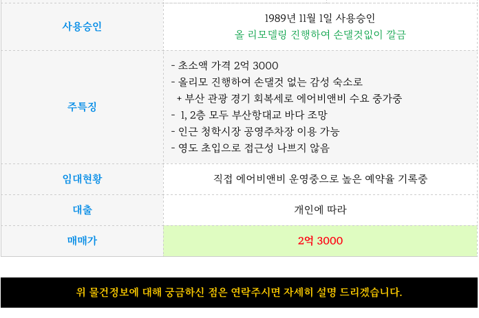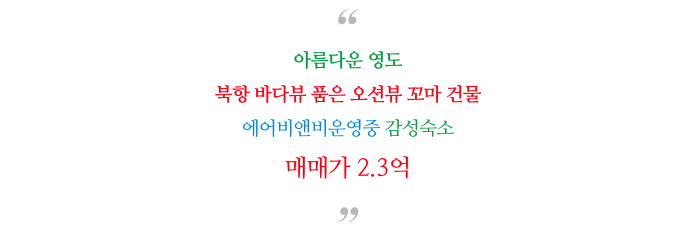 (에어비앤비) (매 2.3억) 영도 바다뷰 리모된 꼬마 건물 빌딩 주택 매매