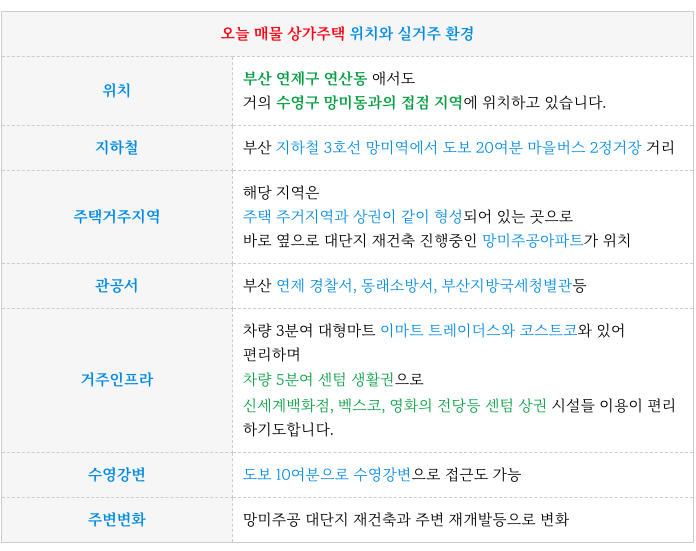 오늘 연산동 망미주공 옆 2층 상가 주택 꼬마 건물 매매 정리 해드립니다.