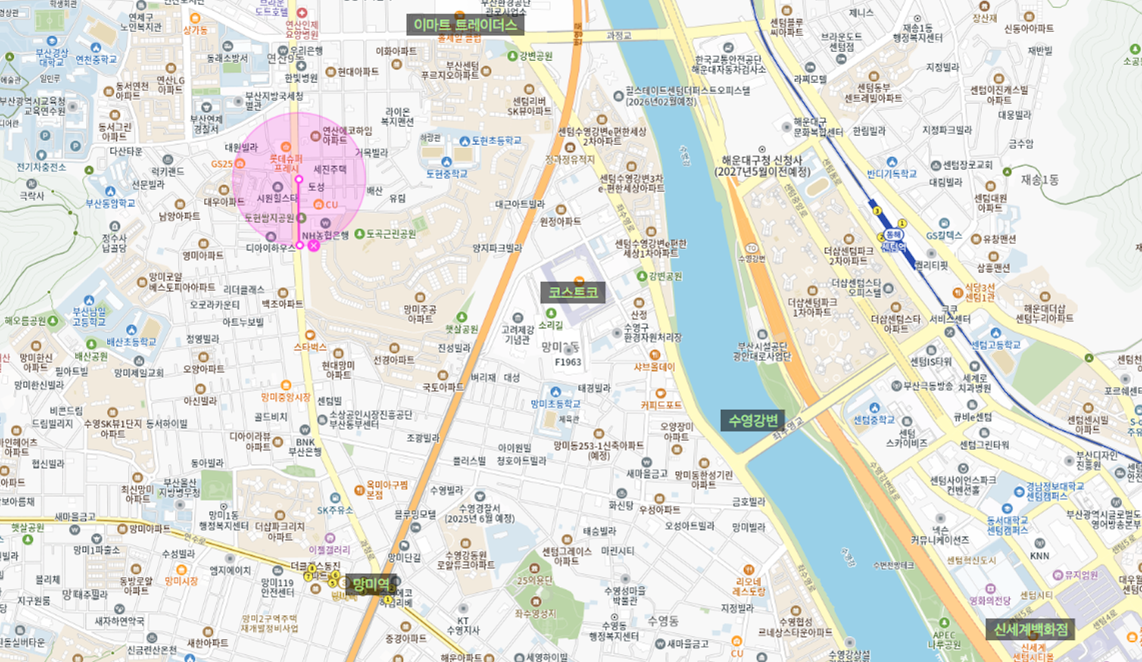 - 주변 망미5구역 재건축등 대단지 아파트 개발등