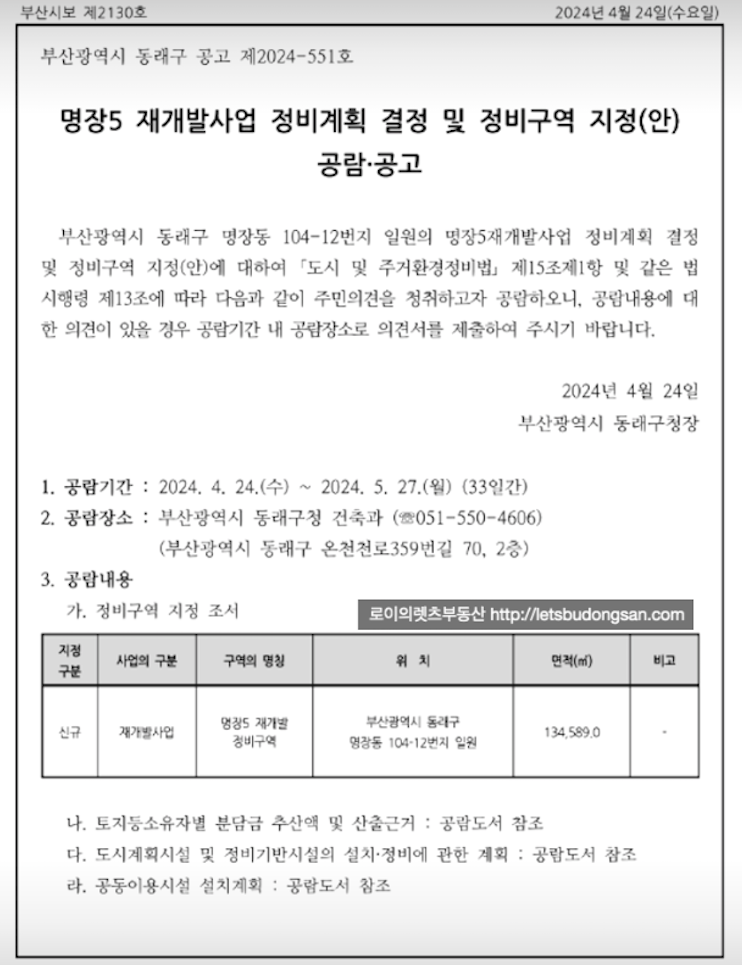 명장5구역 재개발 현재까지 진행 사항 그리고 향후 일정 소개등 추가 정보는 아래 페이지를 참고 부탁드립니다.
