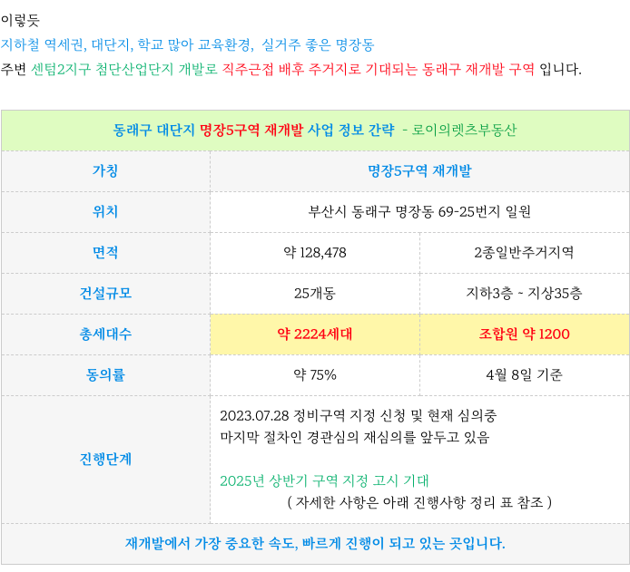 동래구 대단지 명장5구역 재개발 은 최근 진행 사항 체크 & 현 소액 매물 소개해 드리겠습니다.