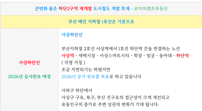 [ 가장 큰 특징 : 하단역의 변화 도시철도 개발 호재 ]