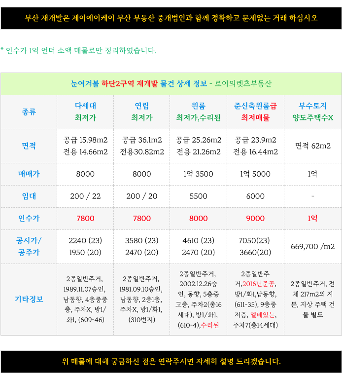 부산 전역의 재개발에 대해 궁금하신 점은 방문 또는 연락주시면 자세히 설명 드리겠습니다.