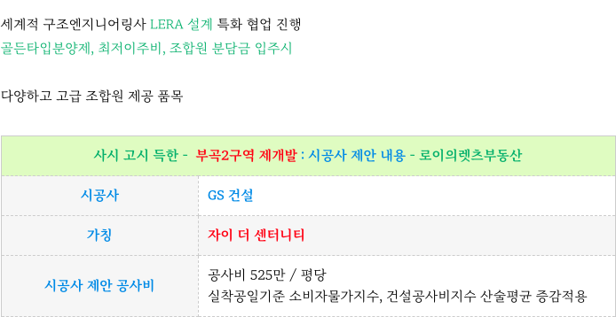 부곡2구역 재개발 GS 건설 주요 제안 부분 소개해 드립니다.