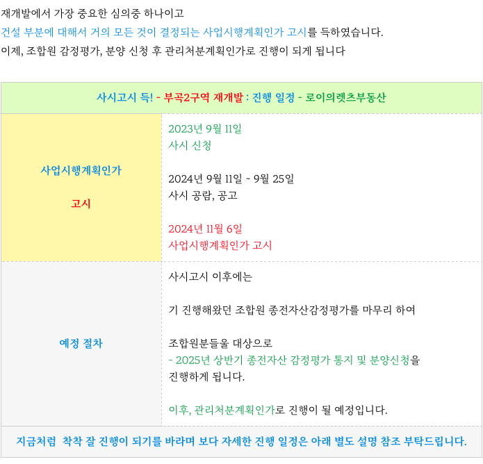 부곡2구역 재개발 사시고시까지의 진행 사항 & 예상 일정 정리 등 추가 정보는 아래 페이지를 참고 부탁드립니다.