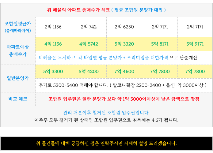 * 소개드리는 매물 총아파트 예상가격과 일반 분양가를 비교시