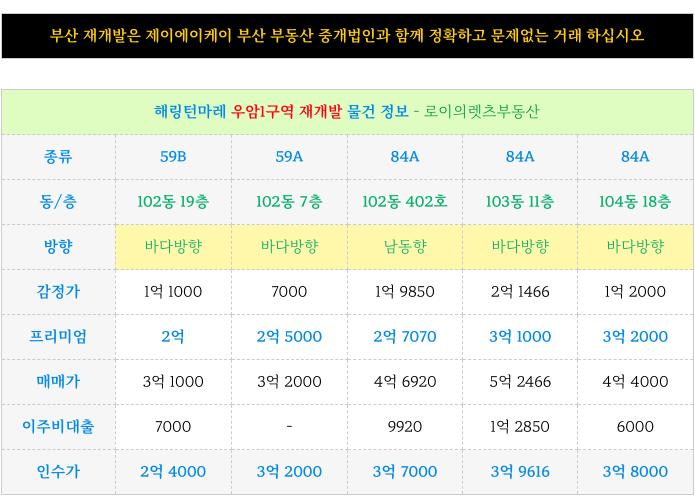 부산 전역 재개발에 대해 궁금하신 점은 방문 또는 연락주시면 자세히 설명 드리겠습니다.