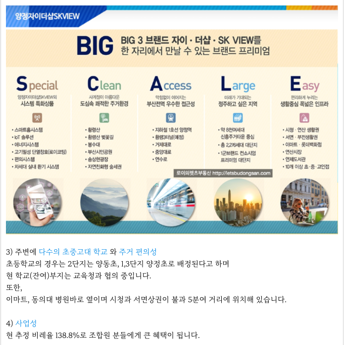 양정자이더샵SK뷰 주요 입지적 특징 다시 간략 정리 드립니다.