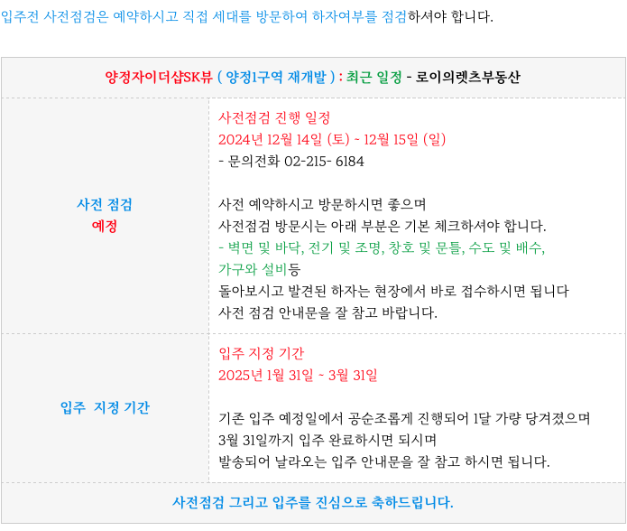 양정자이더샵SK뷰 - 조합원 입주권 매물 & 입주일, 사전점검일 안내