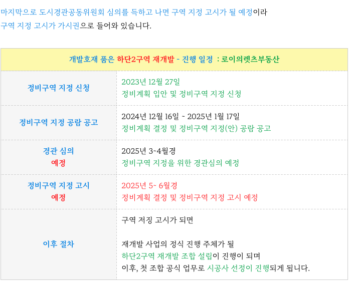 역세권 하단2구역 일자별 진행사항 & 이후 절차 일정 정리등 추가 정보는 아래 페이지를 참고 부탁드립니다.