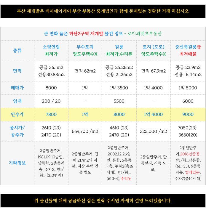 부산 경남 건물 토지 상가 주택 등 부동산 물건 투자 및 물건 접수 받습니다.