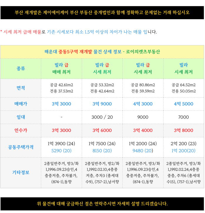 해운대 중동5구역 재개발 : 가격 조정된 최저 급매 매물 소개 드리겠습니다.