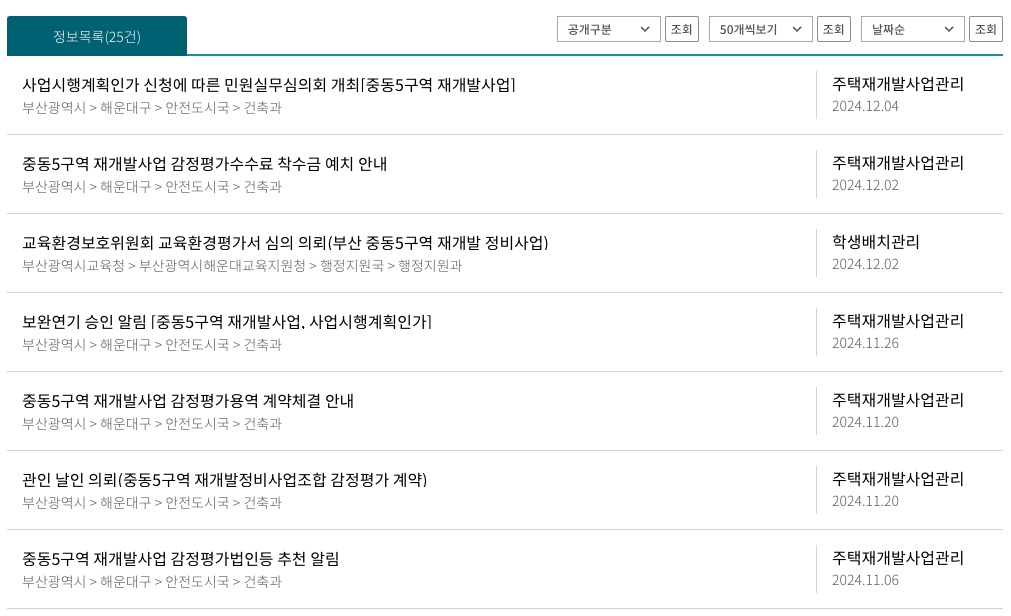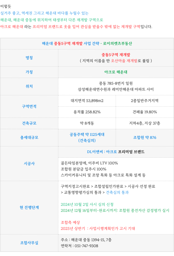 해운대 중동5구역 : 현재까지 일자별 진행 사항 그리고 향후 절차 등 추가 정보는 아래 페이지를 참고 부탁드립니다.